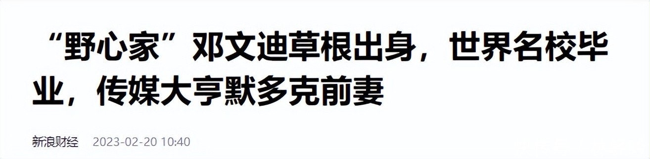 新浪财经——2023年2月20日——“野心家”邓文迪草根出身,世界名校毕业,传媒大亨默多克前妻