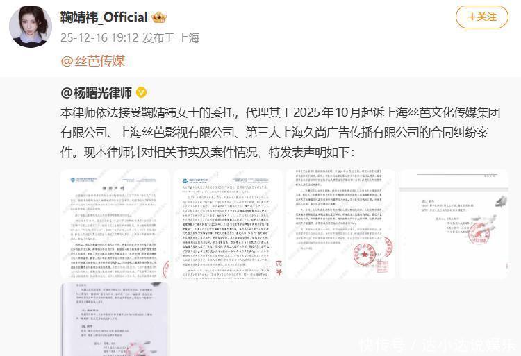 值得注意的是,丝芭传媒在声明中强调 “已掌握证据” 并点名关联人涂某某,却始终未具体说明 “严重经济犯罪” 的具体类型,这种 “手握实锤却暂不公开” 的姿态,既吊足了公众的好奇心,也让事件悬念感拉满。截至目前,处于风暴中心的鞠婧祎及其工作室尚未作出任何公开回应,这种沉默更让这场单方面 “宣战” 显得波谲云诡。纠纷回溯:从合约到期时间到收入分配,矛盾持续发酵事实上,丝芭与鞠婧祎的矛盾并非突然爆发,而是近一年来层层升级的结果。这场纠纷的核心争议点,最早聚焦在 “合约是否到期” 上。12 月 15 日,鞠婧祎方率先发声,称双方经纪合约已于 2024 年 6 月终止,不仅如此,还指控丝芭传媒存在多项违约行为,包括伪造补充协议、恶意伪造艺人签名及授权,甚至无差别 “骚扰” 合作方。鞠婧祎代理律师进一步指出,丝芭在合作期间长期串通关联公司,通过 “双重合同” 隐瞒演艺收入真实金额,截留本应属于艺人的收入,且经多次催告仍未纠正。